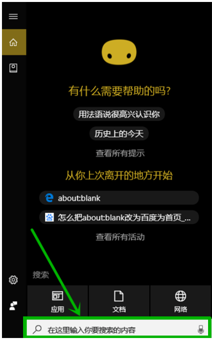 方法 2.在任务栏单击小娜图标,然后在搜索框输入"edge",