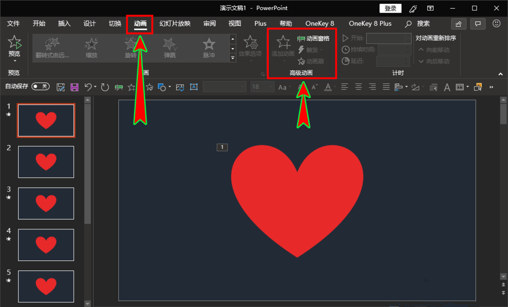 确实设置了动画效果,但是无法正常播放,这时点击软件菜单栏的"动画"——"高级动画"选项,如图,
