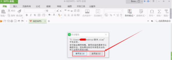 4. 然后,启动 WPS 的 excel,会出现安全警告的小窗口,我们点击“启用宏”按钮。