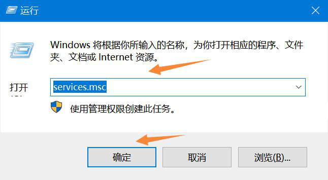 1. 电脑按下"win + R"快捷键打开运行的窗口,输入"services.msc",并点击"确定"的按钮打开系统服务。