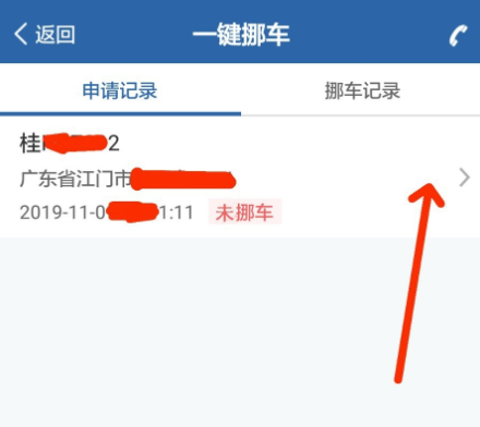 返回一键挪车服务窗口,点击右上角的时钟图标,查看挪车记录,如图,点击相关申请记录,可以查看处理情况,