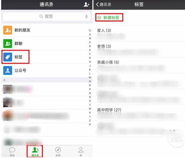 在"通讯录"中,点击"标签"——"新建标签"。