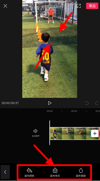 双指缩放视频,点击下方"画布颜色"、"画布样式"或"画布模糊",这里选择"画布样式",