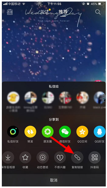 2. 出现菜单选项,点击最下方的"分享到"——"复制链接",