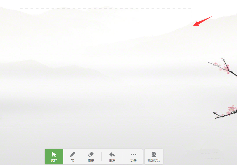 在页面右下角点击"开始授课",白板上会出现虚线框,手掌触摸的地方就起到“橡皮”的作用,