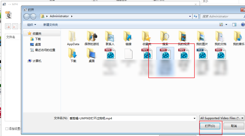 弹出窗口,点击"添加文件",打开对话框,选择准备好的视频,然后点击"打开",