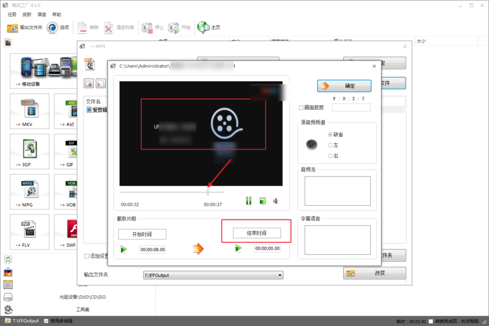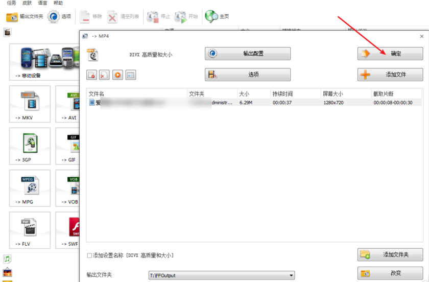 回到之前窗口,点击右上角的确定,然后回到软件主界面,点击上方"开始",格式工厂即会自行处理视频,