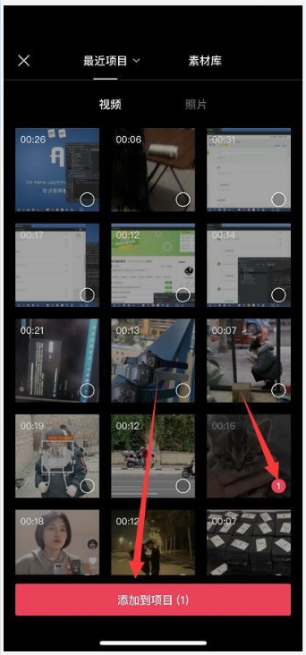 进入手机图库,选择需要处理的视频,然后点击"添加到项目",