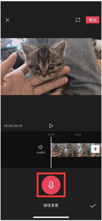 如图,点击录音按钮,你就可以开始说话了;当然,你也可以选择针对视频片段进行配音,直接拖动进度条即可,录音完成,点击右下角的对勾,进行保存,