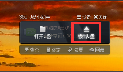 2. 其次我们还可以利用" 360 U 盘小助手"悬浮窗口来执行"拔出 U 盘"操作,以自动使用" 360 U 盘保镖"来安全弹出 U 盘。如图所示: