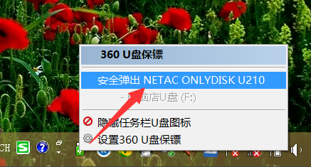 3. 当然,我们还可以通过任务栏右下角的" 360 U 盘保镖"图标来实现弹出 U 盘操作。点击" 360 U 盘保镖",从弹出的右键菜单中选择"安全弹出"相关项即可。