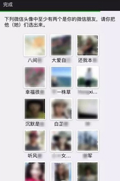 在众多头像中,选择属于你的微信朋友的头像若干,选择成功,即可进入到下一个验证步骤。