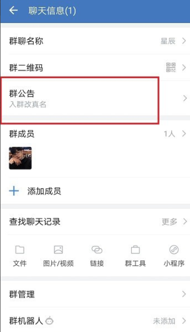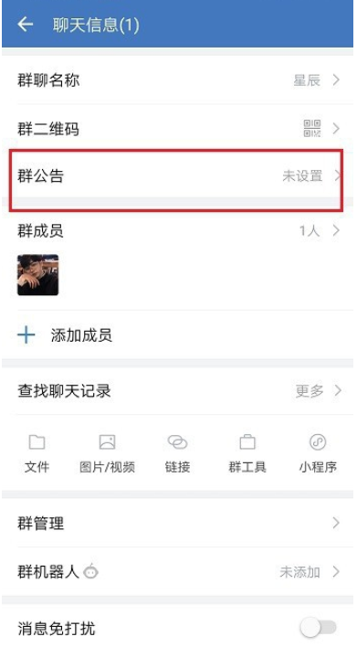 进入聊天信息界面,点击“群公告“,