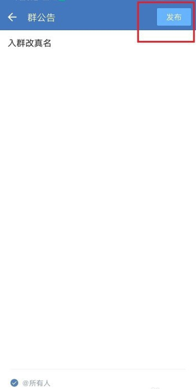进入群公告界面,输入文字内容,点击发布,