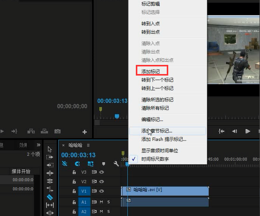 3. 如下图所示,我们可以进行视频预览,之后设置标点选择剃刀工具将视频进行裁剪,