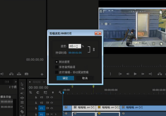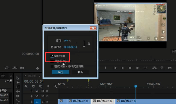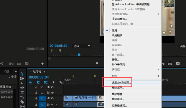 9. 如果需要将此处视频进行时间快速播放调整,我们可以同时选择,