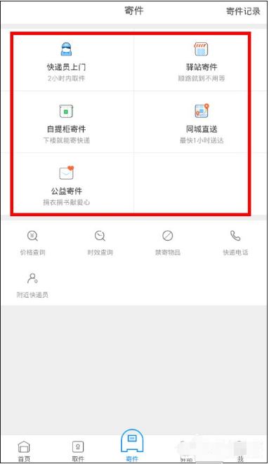 1. 通过下方的"寄件"选项进入寄件管理页面当中。