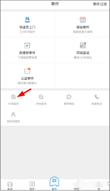 4. 另外通过下方的"价格查询"功能,还能够轻松的查询寄件价格。