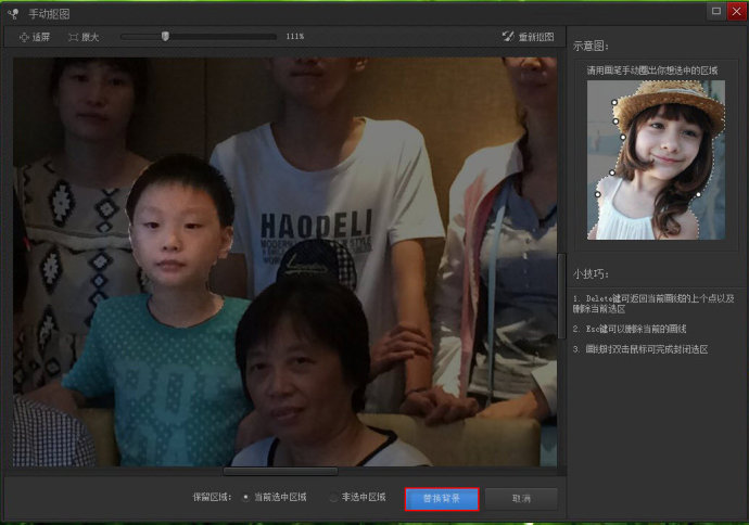如果我们对图片上的某一部分不满意,可以将其提取出来,就是指“抠图“,抠图是将一张图片中的人物或物件抠出来,然后替换它的背景(或背景颜色)。我们平时在旅游. 拍摄集体照时,会发现照片中某个人拍摄时正好眨眼,照片上的眼睛是闭上的,很煞风景,我们可以借助光影魔术手来进行抠图操作,非常智能化。