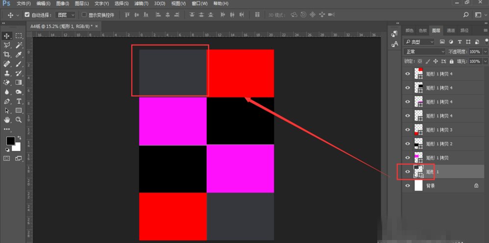 采用同样的方法,复制多个矩形,铺满整个画布,如下图所示。
