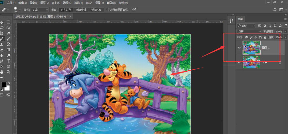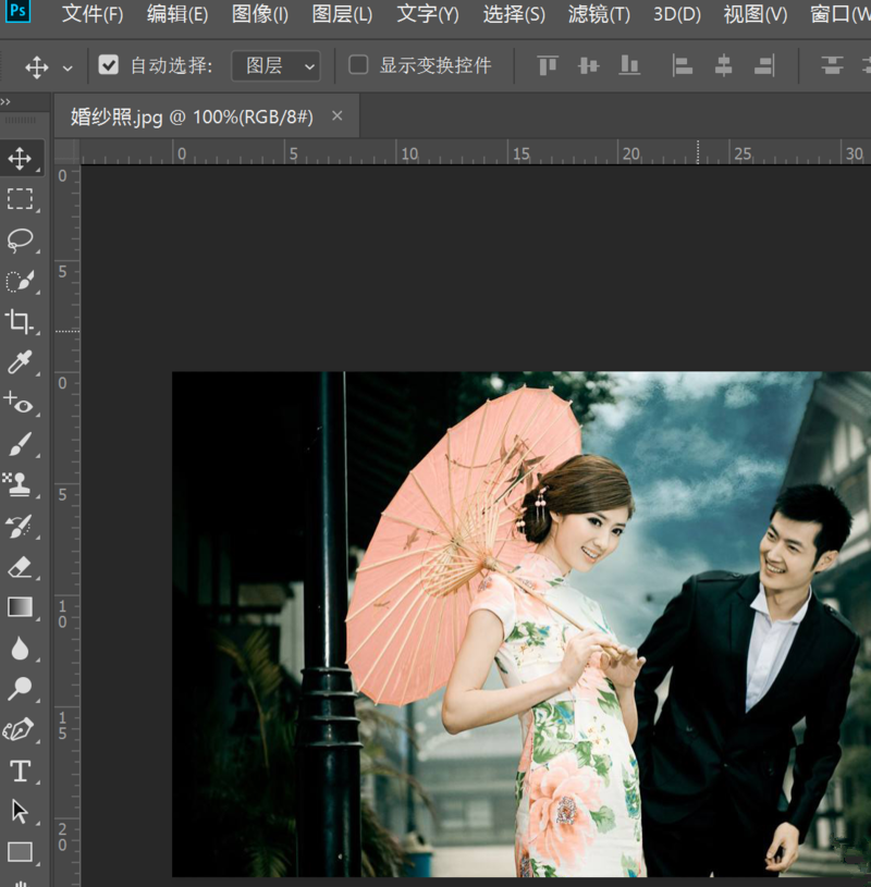 打开 Photoshop 软件,导入一张图片素材,整体颜色并不算突出,