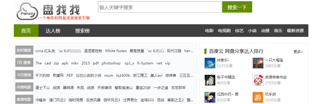 盘找找是一个综合资源网站,功能十分强大,你可以从中搜索视频、音乐、文档、软件等资源。