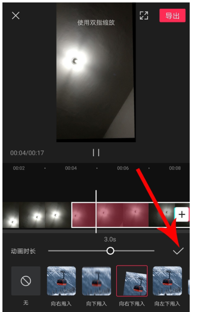 现在设置“动画时长“,按住滑块向右拖动,设置为3秒钟,点击“√“,保存效果。