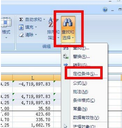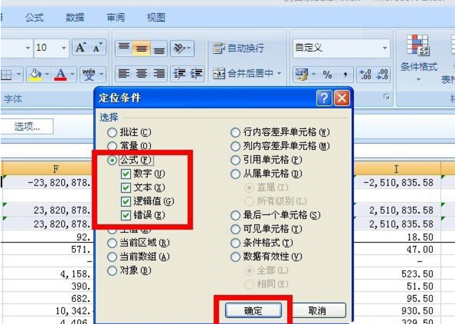 3. 再次点击”查找和选择“--”定位条件“,跳出定位条件的对话框,点击公式,然后确定。