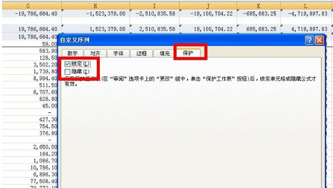 4. 再选定的带有公式的单元格上点击右键--”设置单元格格式“--”保护“--”锁定“--”确定“。