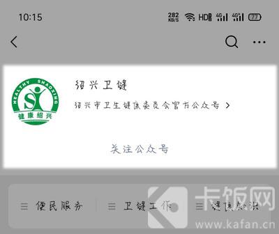 2. 打开手机微信,请关注【绍兴卫检】微信公众号,也可以扫描上方二维码请关注公众号;