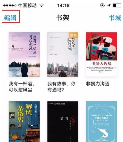 3. 在“书架”界面那我们可以看到我们添加阅读的书籍列表。选择点击左上角的“编辑”;