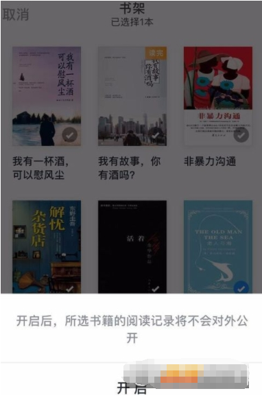 6. 系统会提示你“开启后,所选书籍的阅读记录将不会对外公开”,如果确认是,那么点击“开启”;