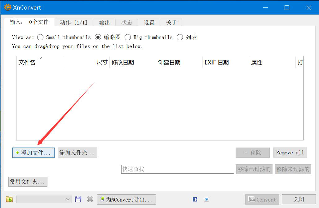 1. 首先,我们打开 XnConvert 软件,切换至“输入”选项卡界面,点击“添加文件”按钮。