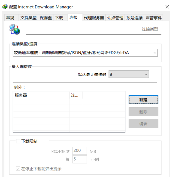 跳出配置页面,点击”连接”,修改最大连接数, IDM 默认为 8 线程,