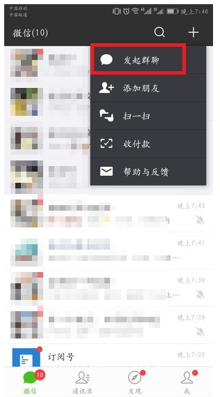 2. 点击”发起群聊”;