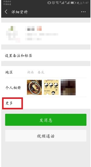 方法 2. 查找与好友的共同群组。在好友的详细资料页面点击”更多”;