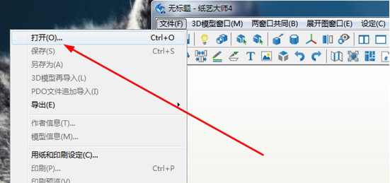 1. 打开纸艺大师,点击右上角【文件】,在其下拉菜单中点击【打开】。