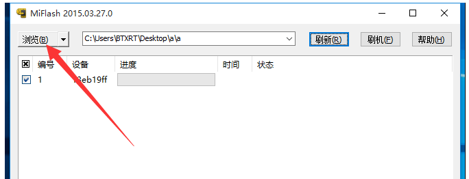 打开 MiFlash 软件,进入界面,点击左上角的”浏览“按钮,