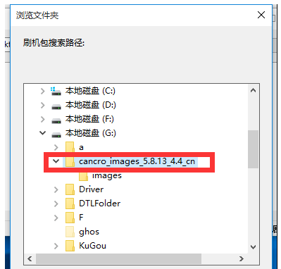 弹出对话框,浏览文件夹,定位到线刷包根目录,即images文件夹上的目录,