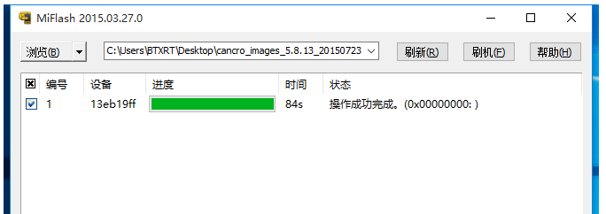 最后点击”刷机“, MiFlash 将自动进行手机刷机,耐心等待,即可看到”操作成功完成“提示,此时小米手机将自动重启进入系统。