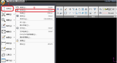 3. 点击左上角 CAXA 图标,接着在其下拉菜单中选择点击“文件”,然后点击选择“打开”。