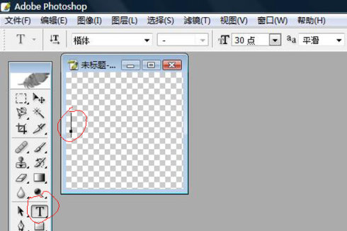 2. 点左侧工具栏中的“横排文字工具(T)”,鼠标左键点在图层上你要写字的位置,开始写字,写后写前设定字体和字号皆可,字的颜色随便