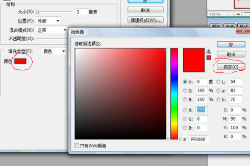 4. 找到右下方工具栏中的“添加图层样式”按扭,点后选择“描边”,默认是描成红色的边