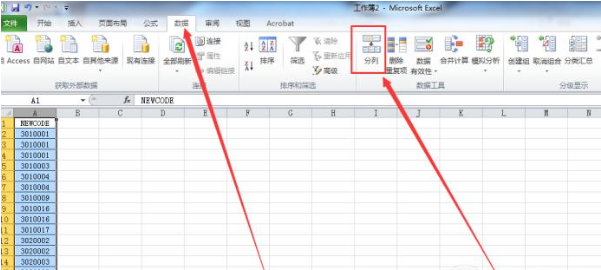 接着,我们在表头的菜单栏中,找到“数据”,然后在“数据”栏目的下面找“分列”字样,如图所示,我们点击一下“分列”,