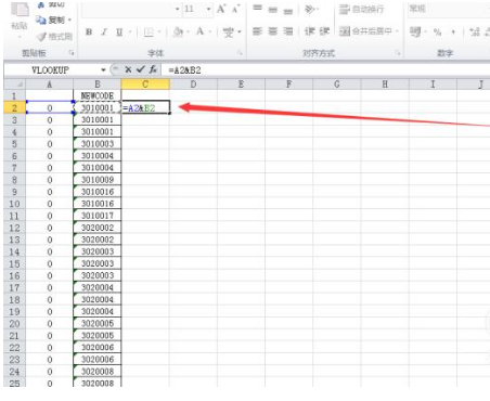 然后,我们在后面的单元格中输入“== A 2 & B 2”,然后按回车键即可,具体看图片内容。