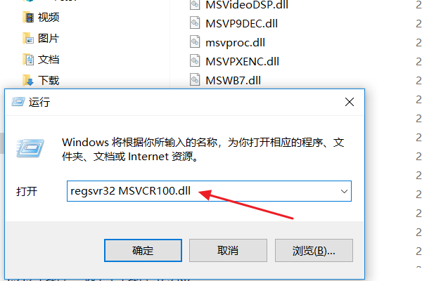 按快捷键【Windows+R】,打开运行窗口,输入regsvr32 msvcr100.dll 命令,回车,