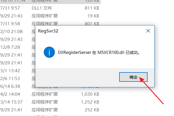 弹出提示,MSVCR100.dll 安装成功,点击确定,问题解决了。