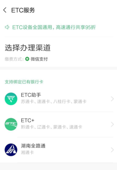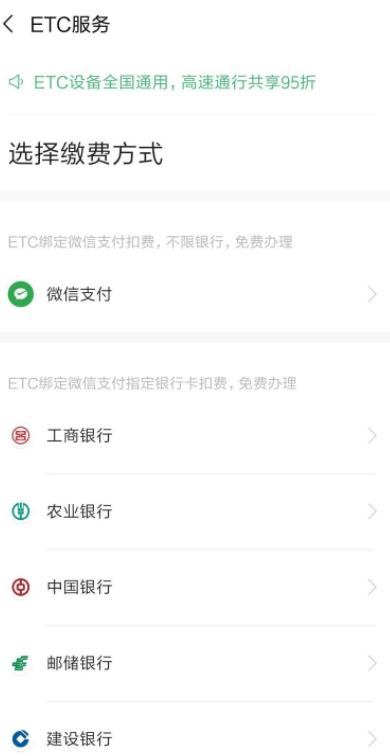 进入 ETC 服务窗口,如图,选择缴费方式,你可以使用微信支付,也可以通过银行卡付款,