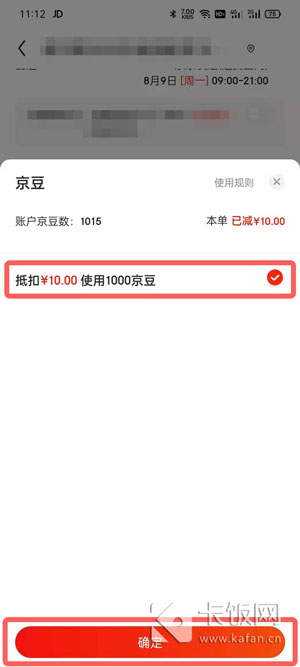 4、勾选右侧的选框,【确定】使用京豆抵扣金额;