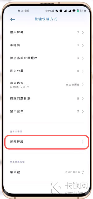 5、背部轻敲可以敲两下或者三下,选择任意一个,点击右侧的设置;